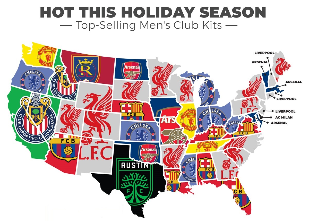European football has been confirmed Leader Also in sales in the USA. “World Football Store“ A study published this week confirms this finding. For the compilation of this map, the period from November 1 to December 1 was taken into account, and only the sets (shirts and shorts) of men were counted, thus excluding the female and children’s models.