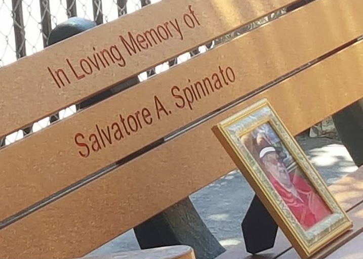In memory of Sal Spinnato who grew up in Little Italy, was a bocce player, past president of the Little Italy Lodge, immersed in the parish and neighborhood, and a treasured friend to many, the Spinnato Family purchased and placed a new bench in Little Italy's bocce courts in memory of their brother/uncle/father.