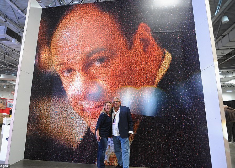 Fans arrived at Meadowlands Exposition Center in Secaucus, New Jersey - set near the roads featured in the opening title sequence - and were greeted by a huge mural made up of hundreds of small photographs that together resembled late actor James Gandolfini.