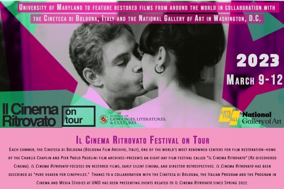The third Maryland edition of the film festival Il Cinema Ritrovato on Tour (Re-discovered Cinema on Tour) takes place from March 9 through March 12, 2023 on campus at College Park (ASY 2203), and at the National Gallery of Art, Washington, D.C. It features historic films about revolutionary movements for national independence from around the world...