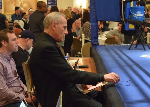 Ladies and gentlemen, introducing one of professional boxing’s most respected stars outside of the ring. From Chicago, the only Italian-American professional boxing judge in the state of Illinois, always in the neutral corner, is Mauro DiFiore. DiFiore never steps into the ring and he must always maintain strict neutrality. His skills and 50 years of boxing experience have made him one of the most sought after professional boxing judges in the world.
