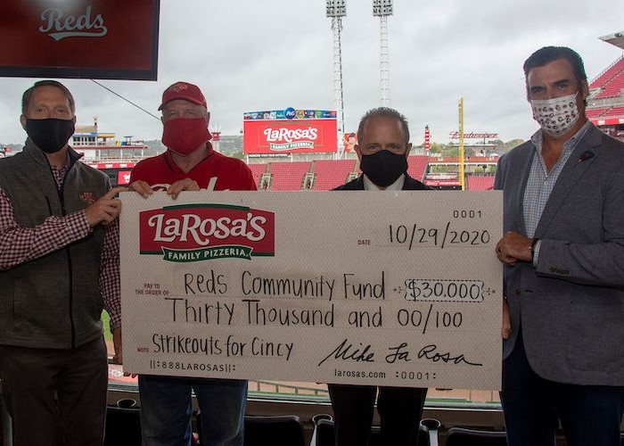 With no Reds fans allowed at Great American Ball Park in 2020 to help prevent the spread of COVID-19, LaRosa’s Family Pizzerias changed its long-running fan favorite ‘Strikeouts for Slices’ promotion to ‘Strikeouts for Cincy’. Instead of giving away free pizza, LaRosa’s contributed $1,000 to the Reds Community Fund every time a Reds pitchers struck-out 11 or more batters during the 60-game regular season and Wild Card Playoff games.