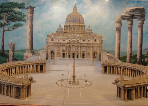 The magnificent 1:100 scale replica was conjured out of hand-carved soft wood over a five-year period in the 1940s by the father-and-son team of Attilio and Lucio Savoia. It was donated to the cultural center in the 1960s. The exquisite miniature is accurate to the smallest details, including the scores of statues that line the colonnades surrounding the piazza and the many lamps that illuminate the square.