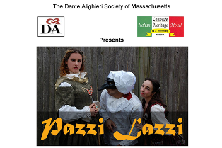 "Pazzi Lazzi" Troupe, Boston based Commedia dell'Arte company, will present the show "Aria Di Commedia - An Evening of Italian Renaissance Theatre and Music", co-sponsored by Dante Alighieri Society, as the closing event of Italian Heritage Month.