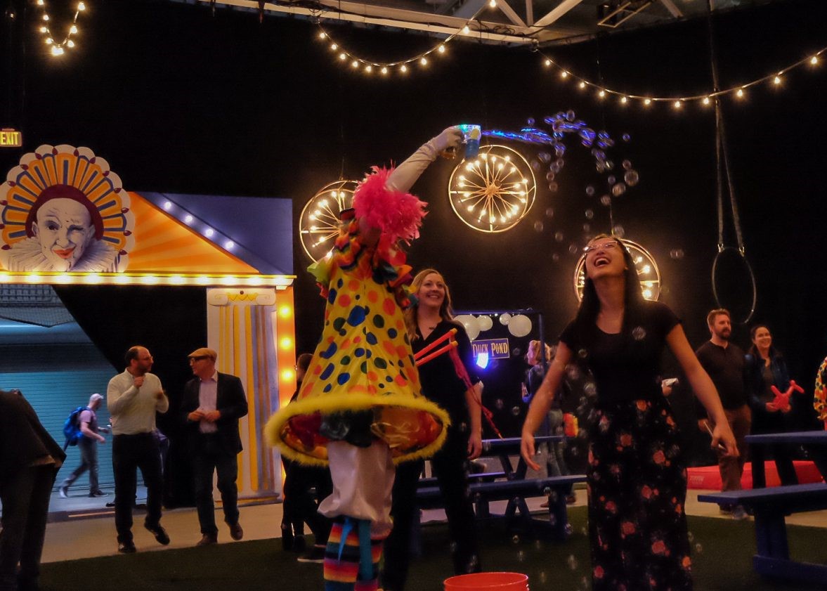 The experience includes access to an indoor fairgrounds—complete with acrobats, jugglers, clowns, performers on stilts, carnival-style games, and a photo op with the unofficially dubbed “Huge Jackman” elephant sculpture—and a circus tent theatre curated to create a sensual experience for the individual audience member.