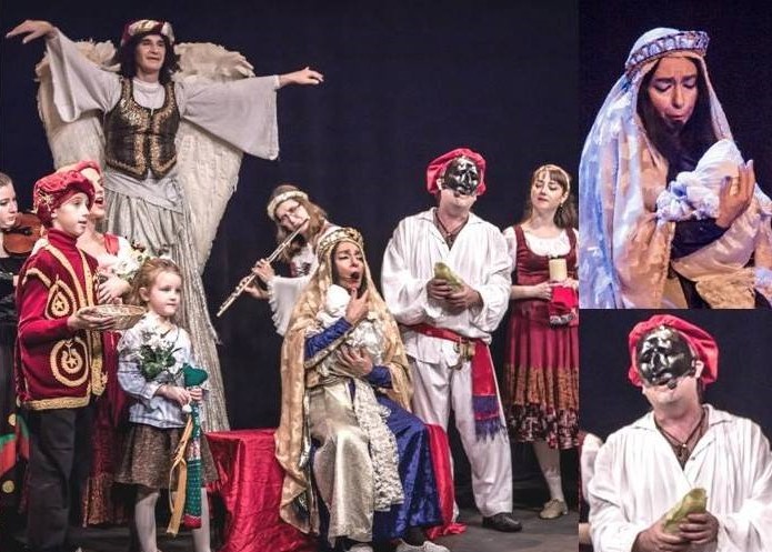 Mary and the lead character Pulcinella experience funny, outrageous, and dangerous adventures before they finally reach Bethlehem, where Good triumphs over Evil! Songs are sung in Italian and old Neapolitan dialect; costuming and music instrumentation is traditional Southern Italian; narration is in English by the remarkable magical good witch, LA BEFANA!