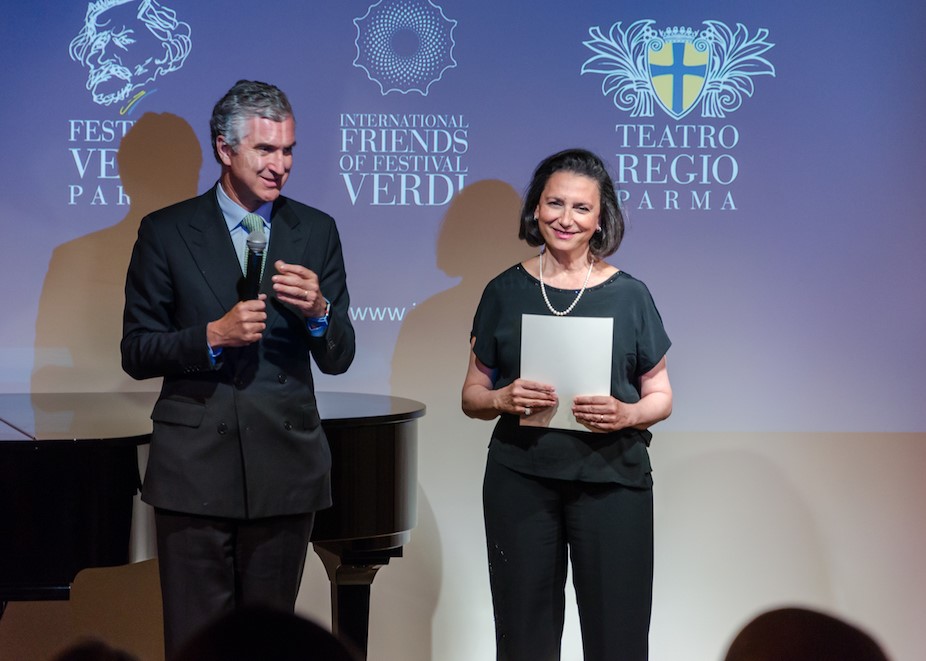 Lo splendido giardino della Casa ha accolto quasi cento ospiti tra italiani e americani, tutti amanti dell’opera, che hanno goduto di un aperitivo e di assaggi delle eccellenze culinarie della provincia di Parma. Dopo l’aperitivo “al fresco”, la folla si è spostata nell’auditorio dove la presentazione del programma del Festival Verdi e l’introduzione all’associazione sono state moderate da Francesca Campagna, direttore esecutivo che gestisce il progetto da New York.