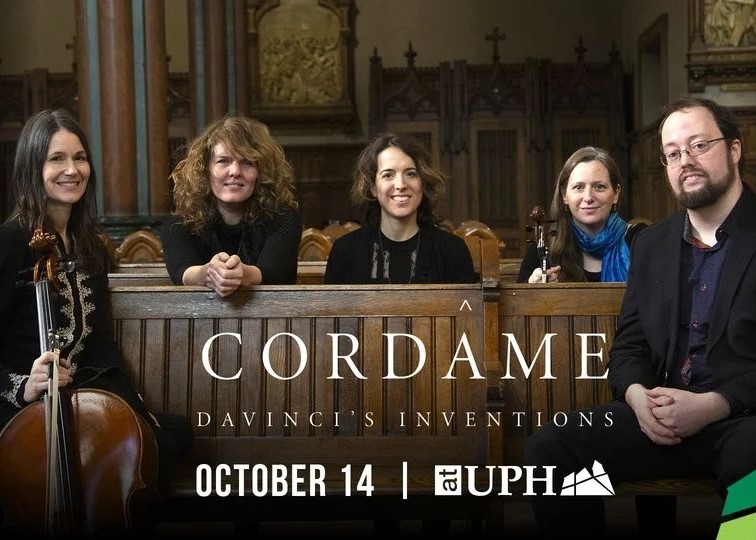 Appearing at the Universal Preservation Hall in Saratoga Springs on October 14th is Cordâme. The wonderfully unique group, centering around the music of composer Jean Félix Mailloux, will be presenting their latest work, Da Vinci Inventions. Always in the process of reinventing his musical language, composer Jean Félix Mailloux now transports us into the universe of Leonardo da Vinci.