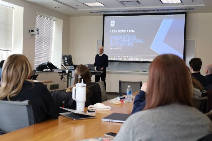 Andy Mitchell, managing director of Lega Serie A USA (the American division of Italy’s preeminent soccer league), recently visited Falk College to speak with students in the SPM/SAL 300 “Italian Football: Impact and Outcomes” class. The course includes a spring break trip to Italy, where the students will meet with Serie A organizations and other industry leaders while learning about the culture of Italy.