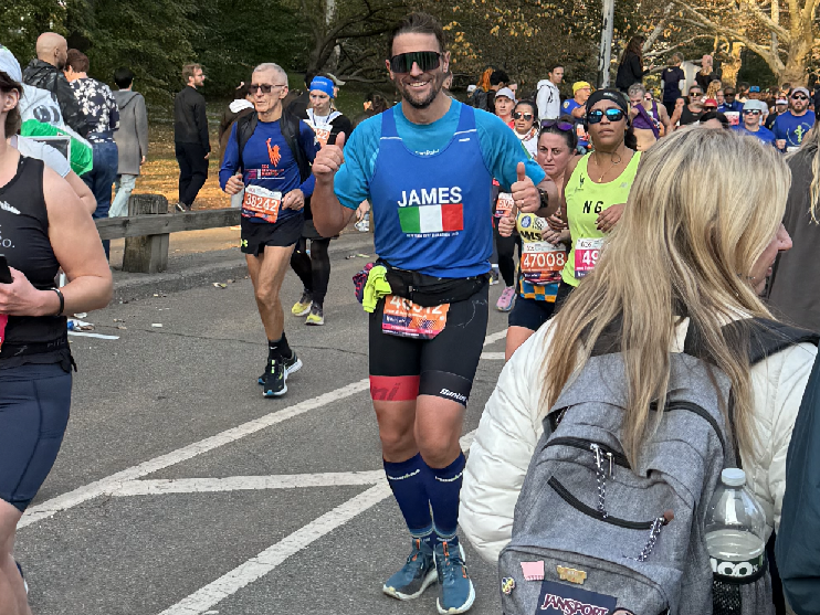 An Italian, however, would likely argue –vociferously and emotively– that the more accurate term is impassioned. There is no better word to describe the small group of Italians standing underneath the 24.8 mile marker at the New York Marathon on Sunday; they were passionate (and yes perhaps a bit loud). As runners streamed by, they kept a keen eye out for the distinctive blue jerseys and the occasional green, white and red flags.