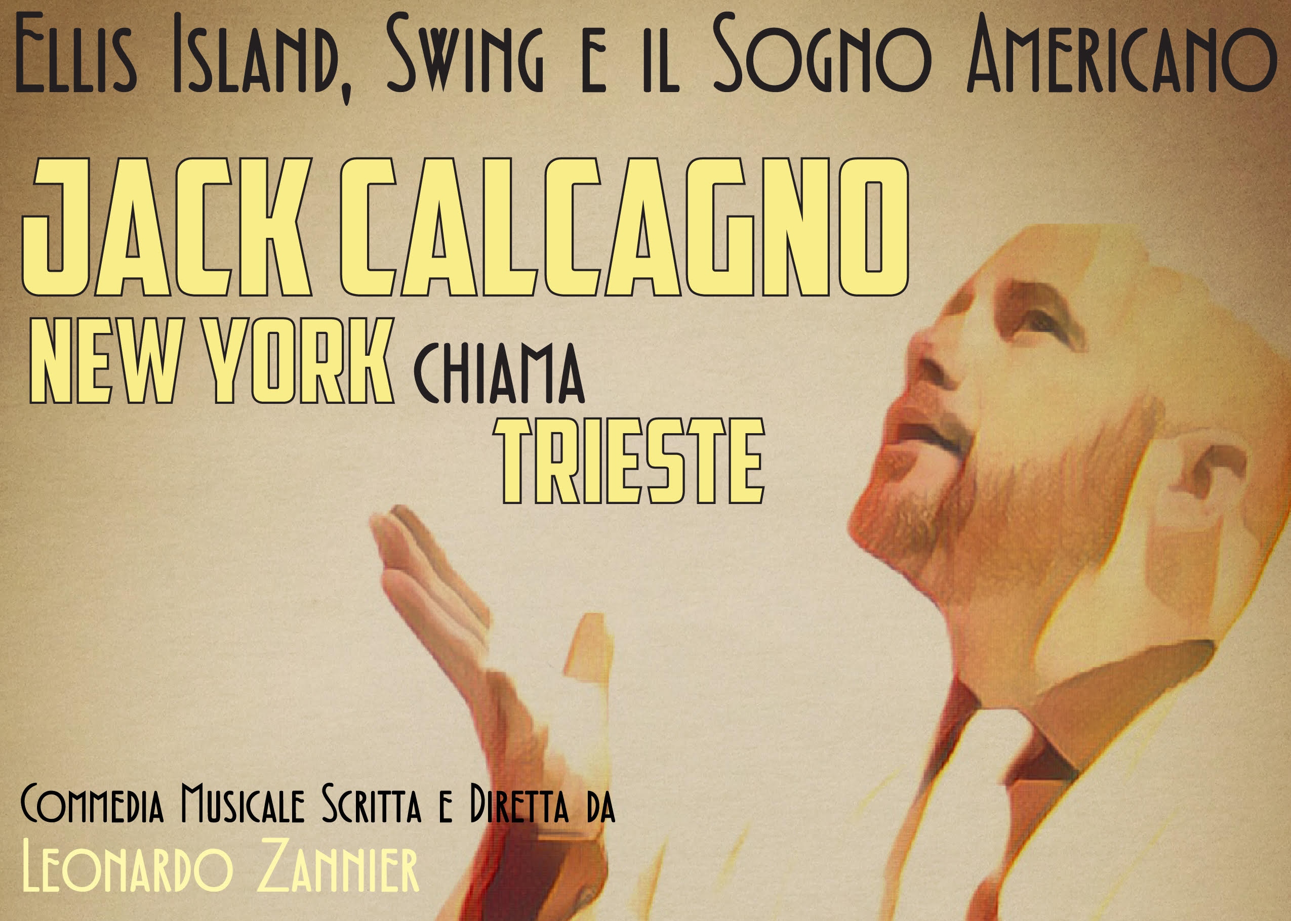 ELLIS ISLAND, SWING E IL SOGNO AMERICANO. Jack Calcagno – New York chiama Trieste. Uno spettacolo scritto e interpretato da Leo Zannier. Al pianoforte, il maestro Antonio “Tony” Kozina. Giovedì 25 maggio 2017, ore 7pm presso il Carmine Street Theater di New York. Ingresso libero