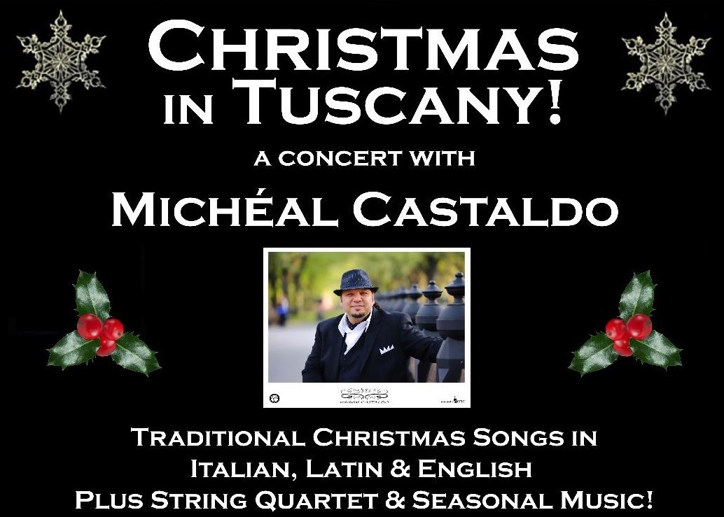“Christmas in Tuscany—A Concert with Michéal Castaldo,” a traditional Italian Christmas concert featuring award-winning Italian tenor Michéal Castaldo and friends, will take place on Saturday, December 1, 2018 at 7:00p.m. at New Dorp Moravian Church, 2205 Richmond Rd., Staten Island, NY 10306.