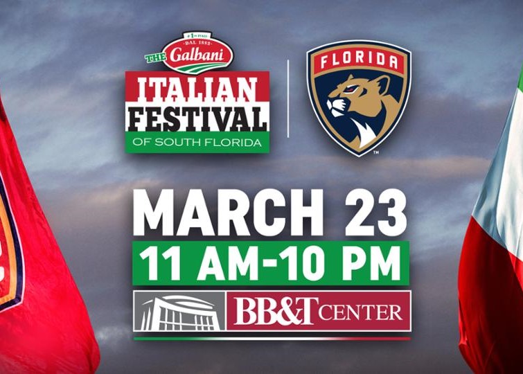 The Florida Panthers announced today they will host The Galbani Italian Festival at BB&T Center on the JetBlue Tarmac on Saturday, March 23 from 11 a.m. to 10 p.m. The Florida Panthers host the Boston Bruins at 7 p.m. that evening. Fans will get the opportunity to participate in Galbani cooking demos, Voga wine seminars and more. Kids activities include Bocce ball, face painting and more.