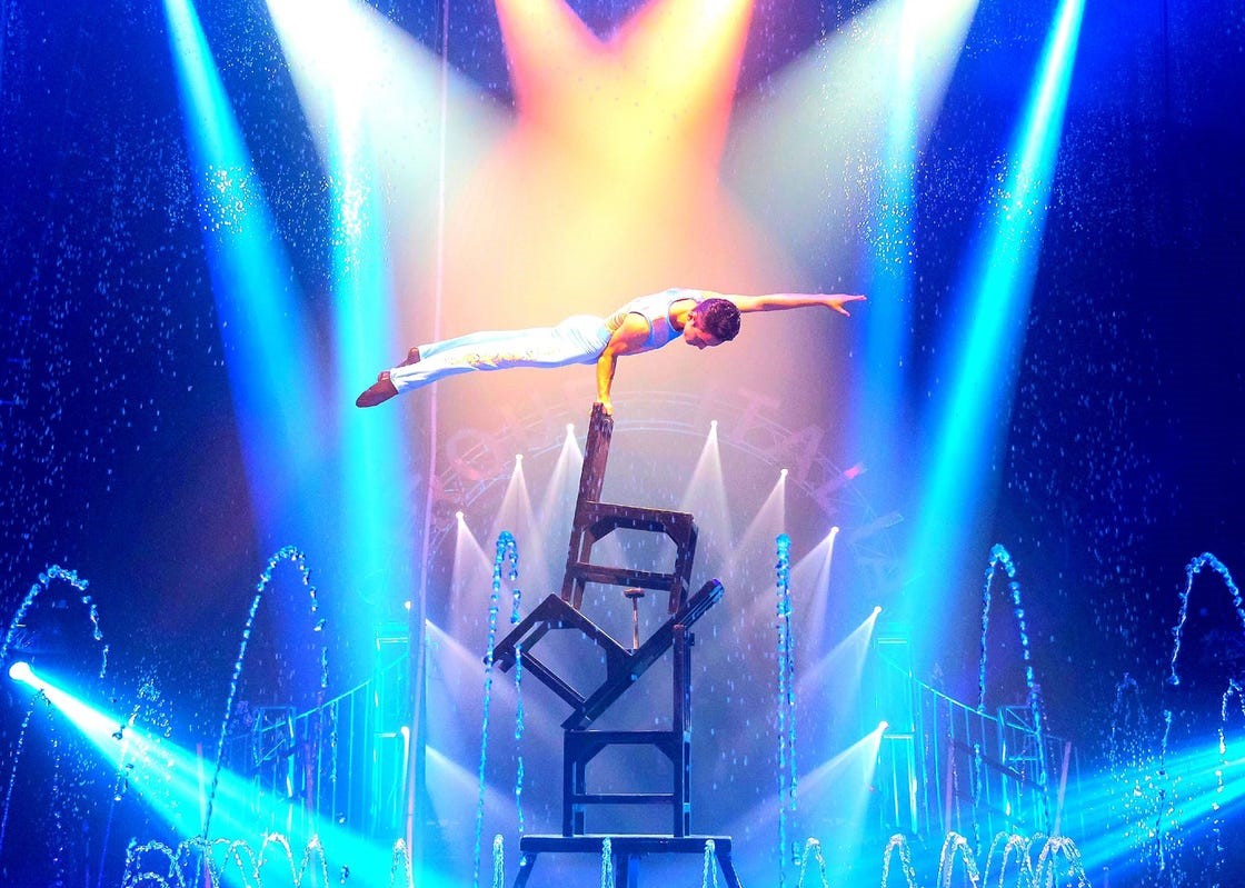 The circus show takes place above a 35,000-gallon water stage and features performers from Argentina, Brazil, Romania and various other countries. This year's show will take audiences back in time to the 1950s and the era of greased hair and Elvis Presley.