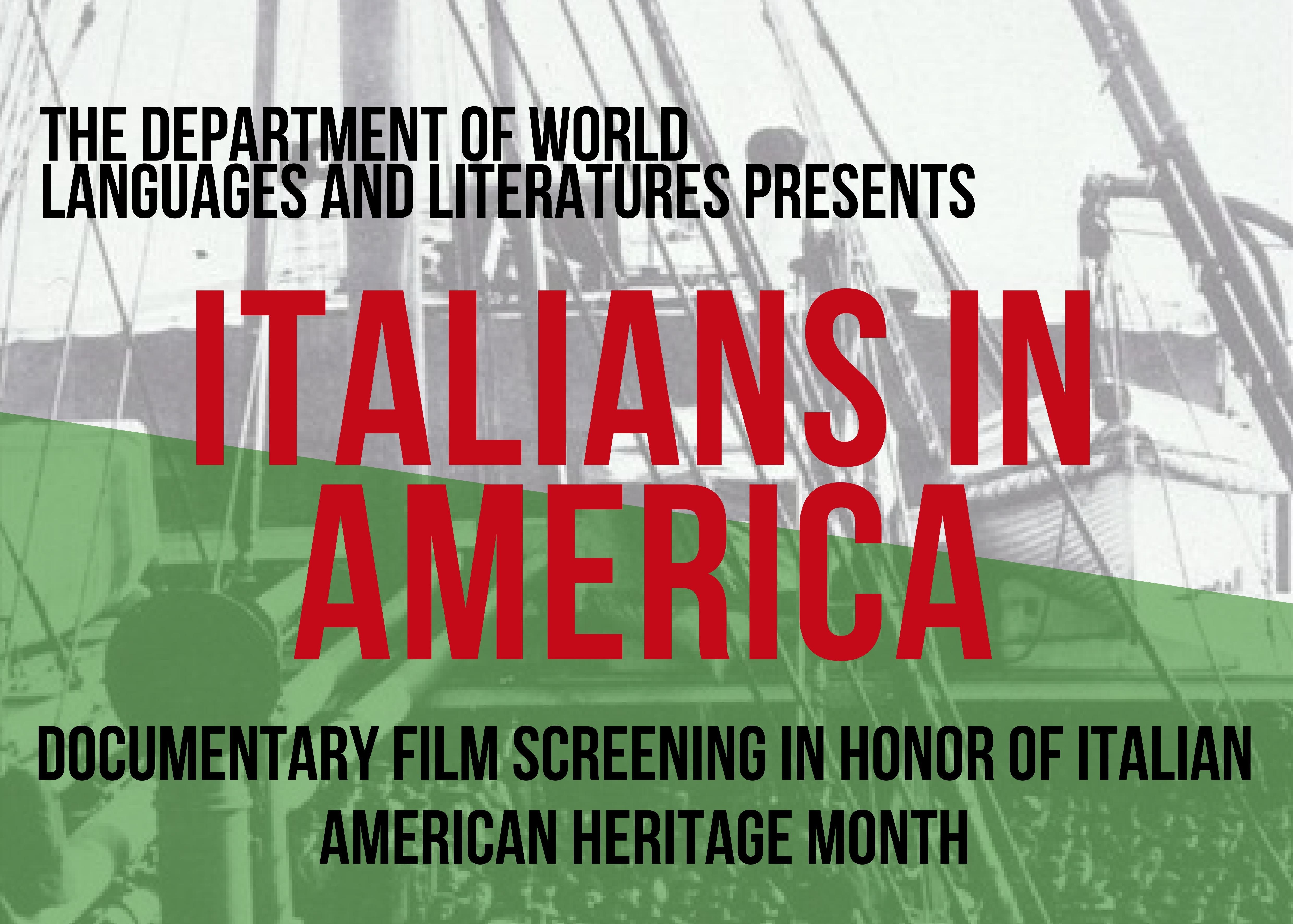 In occasione del mese di Ottobre dedicato dallo Stato del Texas al Retaggio Italiano, il Dipartimento delle lingue straniere e di letteratura della prestigiosa Southern Methodist University (SMU), in collaborazione con il Comitato Tricolore per gli Italiani nel Mondo, e con il patrocinio del Comites di Houston, dell'Associazione dei Siciliani in Texas e dell'Italian Club dell'SMU, presentano il video documentario "Italians in America".