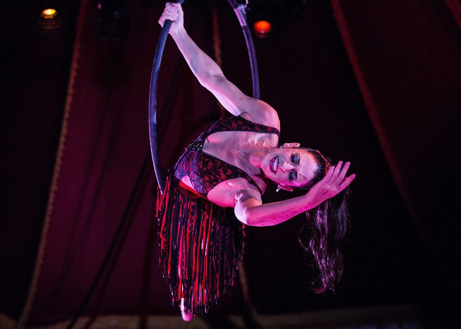 When her PNB career ended in 2011, Lallone knew that she wanted to keep performing. Eight years later, look up, and there she is — an aerial artist with Teatro ZinZanni, dancing midair high above the dinner-theater audience, with a hoop as her partner.