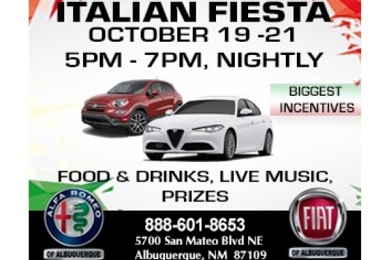 What's there to do when the Albuquerque Balloon Fiesta wraps up? How about an Italian Fiesta?! Savor Italian foods, beer and wine, register for prizes including an HDTV and dinner for 2, and preview Italian car design during the Italian Fiesta at Alfa Romeo and Fiat of Albuquerque. The event will be Thursday, Friday and Saturday nights, Oct. 19th-2...