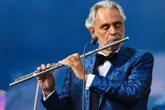 At the start of his set, Andrea took to the stage with his flute. Rather strangely, the conductor started up You’ll Never Walk Alone from the 1945 Rodgers and Hammerstein musical Carousel while the voice-over was still introducing the singer as “The best-loved tenor in the world whose mellow yet powerful timbre has resonated to the tune of 80 milli...