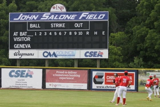 READ MOREThe Geneva Red Wings held a special ceremony Thursday night to pay tribute to their late groundskeeper John Salone. McDonough Park’s field is now “John Salone Field” as fans will notice atop the scoreboard. Salone, a community figure and a 1974 De Sales High School graduate, passed away last August at the age of 66. John’s contributions to the comm...