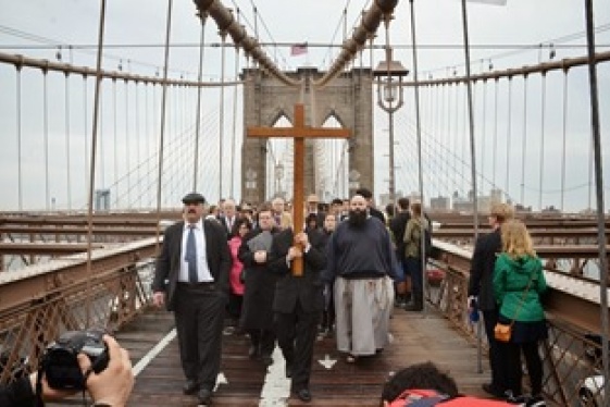 READ MOREdi Riccardo Chioni Come venti anni fa, quando una trentina di fedeli di Comunione e Liberazione si avviarono sul ponte di Brooklyn per la prima processione del Venerdì Santo, anche ieri il cielo era grigio con pioggia a tratti, che tuttavia non ha dissuaso oltre duemila persone a seguire la Croce nel suggestivo percorso. La processione, p...