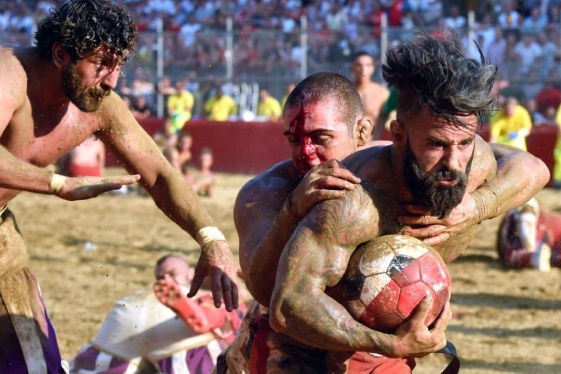 READ MOREA young man lies spread-eagle in the center of a sand-covered arena, blood streaming from a gash above his eye. The guy who opened up this wound is straddled across his chest, pinning him down. All around them, more men are brawling in a terrifying tangle of fists and knees, shoulder charges and thrown elbows. Lending a surreal edge to this scene i...