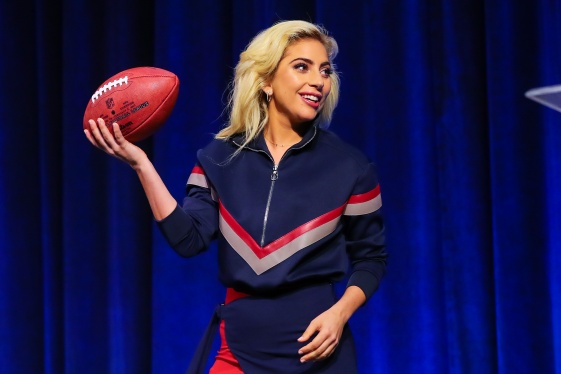It makes sense for Lady Gaga to be wearing lots of patriotic sports-themed apparel, like her football purse, in the days leading up to her performance at what might be the most American sporting event of the year, the Super Bowl. Which appears to be why she chose to where a red, white and blue trendy track ensemble at Thursday’s Pepsi Zero Sugar Su...