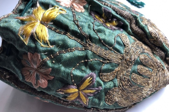 READ MORETHE PURSE IS PLENTY PRETTY on the outside: emerald silk, embroidered with dainty yellow, purple, and peachy-pink blooms, arcing out of metallic vases. But things get more interesting when one pries the lustrous little parcel open. Between the seams and under the stitches, there’s something faded and faint, but unmistakable: a blue “Q” tucked betwee...
