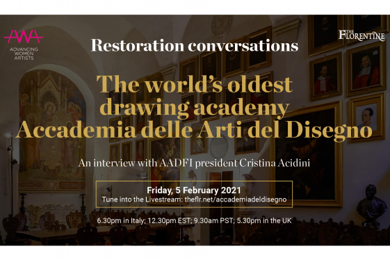 READ MORETo join the event, tune in LIVE on-line, with organizers Advancing Women Artists and The Florentine, on Friday February 5th at 6.30pm in Italy; 12.30pm EST; 9.30am PST; 5.30pm in the UK. Please use this link: Restoration Conversations: The world's oldest drawing academy, Accademia delle Arti del Disegno or access directly through TF's Facebook and...