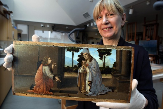 READ MOREItalian scholars claim they have unearthed the first known piece by Renaissance genius Leonardo Da Vinci. "The Archangel Gabriel," a painted glazed tile, was signed and dated by an artist believed to be the 18-year-old Da Vinci. The claim is based on a signature and date painted in the angel's jaw line, barely visible to the naked eye. It reads "Da...