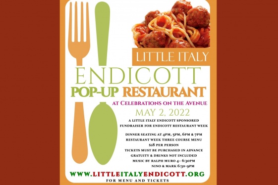 READ MOREIn celebration of Endicott’s restaurant week, Little Italy Endicott hosted a special pop up restaurant Monday, May 2 at Celebrations on the Avenue. People from around the community gathered together for a three course meal featuring a variety of Italian food. Special performances were also held by Ralph Muro and acoustic guitar duo Nino Samiani and...