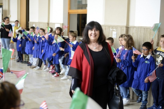 READ MORETutti i bambini della scuola Montessori di Macerata in fila per dare il benvenuto a Joan Marchi Migliori, italoamericana che ha consegnato 10mila dollari all’istituto di via Don Bosco. All’arrivo della donna, originaria di Lucca, hanno cantato gli inni nazionali dell’Italia e degli U.S.A. sventolando le bandierine dei due paesi legati da una fortis...
