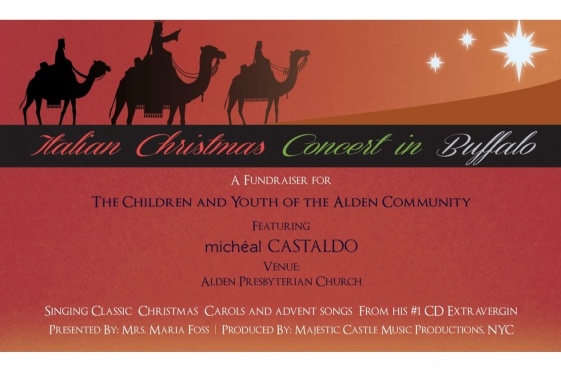 READ MORE“Italian Christmas Concert in Buffalo,” a traditional Italian Christmas concert featuring award-winning Italian tenor Micheal Castaldo and friends, will take place on Friday, December 8, 2017 at 8:00p.m. at Alden Presbyterian Church, 13298 Broadway, Alden, NY 14004. Castaldo will perform classic Christmas carols from his chart-topping best-selling...