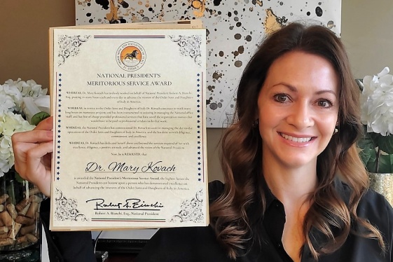 READ MOREOn February 12, 2022, Dr. Mary Kovach, among four others, was awarded the National President’s Meritorious Service Award from Robert (Bob) Bianchi, Esq., the National President of the Order Sons and Daughters of Italy in America® (OSDIA). The Order Sons and Daughters of Italy in America® (OSDIA), established in 1905, is the largest and oldest natio...