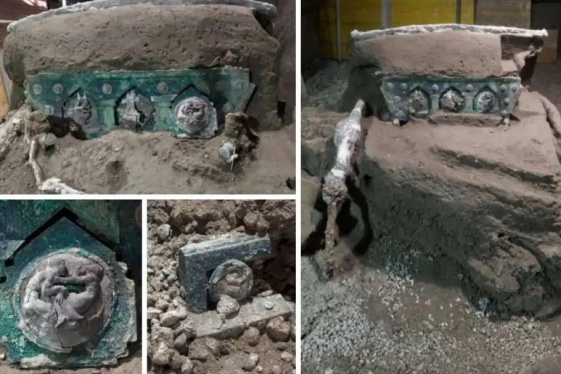 READ MOREArchaeologists have unearthed a unique ancient-Roman ceremonial carriage from a villa just outside Pompeii, the Italian city buried in a volcanic eruption in 79 AD. The almost perfectly preserved four-wheeled carriage made of iron, bronze and tin was found near the stables of an ancient villa at Civita Giuliana, around 700 meters north of the walls...