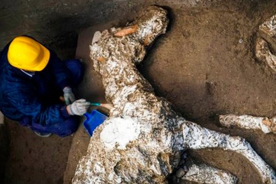 READ MOREArchaeologists have unearthed the petrified remains of a harnessed horse and saddle in the stable of an ancient villa in a Pompeii suburb. Pompeii archaeological park head Massimo Osanna told Italian news agency ANSA that the villa belonged to a high-ranking military officer, perhaps a general, during ancient Roman times. Osanna was quoted on Sunda...