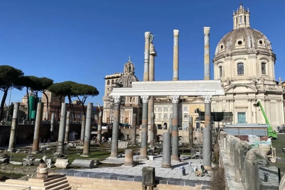READ MOREA major restoration project to reconstruct part of the Basilica Ulpia, once the largest basilica in Rome, is currently nearing completion in Trajan's Forum. An architrave topped by a second tier of three columns in green cipollino marble have been added to the ruins using anastylosis, a restoration process which incorporates the original architectu...