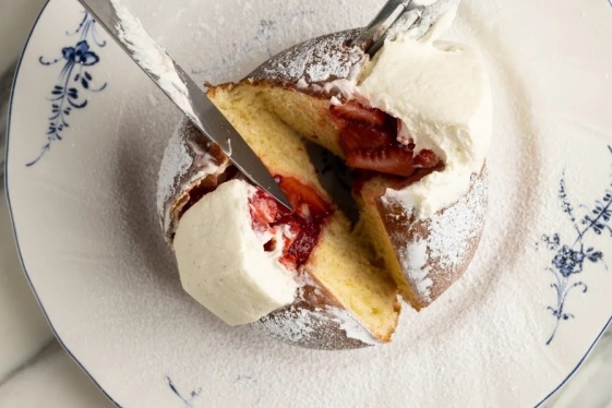 READ MOREBefore Shannon Swindle even got the job as pastry chef at Mother Wolf in Los Angeles, he knew maritozzi were destined for the dessert menu. The restaurant’s bouncy, football-shaped Italian brioche buns are filled with an absurd amount of cloud-like whipped cream and hide a surprise sweet-tart pocket of macerated Harry’s Berries. “It’s a bit more de...