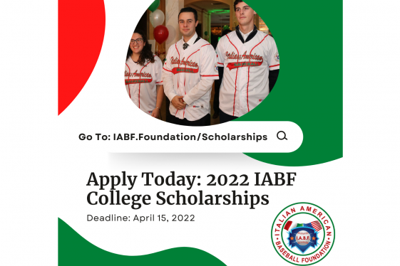READ MOREThe Italian American Baseball Foundation awards college scholarships to deserving student-athletes who express pride in our culture and heritage. LEARN MORE & APPLY! All awardees must follow the application process. Our goal is to honor graduating high school seniors or current college players. An IABF scholarship committee will select the winners...