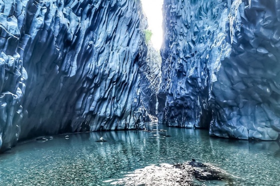 READ MORESlicing through the ancient lava flows of Mount Etna, the Alcantara River creates this totally stunning & breathtaking natural canyon known as the Gole dell'Alcantara in Sicily. Enchanting waterfalls, natural ponds, hexagon-shaped basalt columns, and deep, narrow gorges can totally be found there. You'll also see these woodpile, harp, and rosette-l...