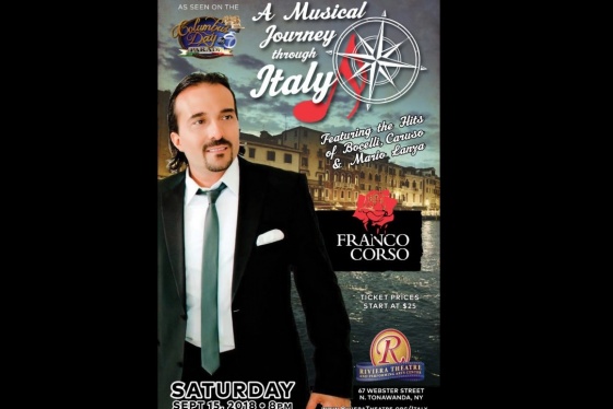 READ MORENo place nurtures Romance and Amore like Italy and no current Pop-Opera ‘Crooner’ honors Italy more than Franco Corso. ‘The Voice of Romance’ and his stellar band of International musicians will take you on a ‘Musical Journey Through Italy.’ Featuring beloved songs of Bocelli, Caruso, Pavarotti and many Italian upbeat pop, such as ‘Italiano’, ‘Il M...