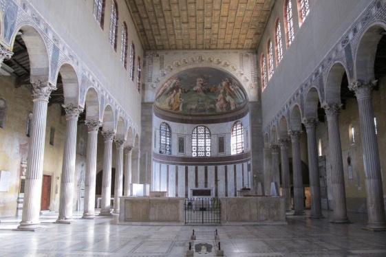 The Basilica of Santa Sabina was built by one Peter of Illyria during the reigns of Popes Celestine I (422-432) and Sixtus III (432-440), as testified by the magnificent golden mosaic inscription opposite the apse. This is the only surviving mosaic, as many others would have decorated the space between the arcades and the clerestory. Upon entering...