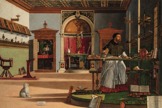 READ MOREA wistful pilgrim sits on a marble step in the right foreground of Vittore Carpaccio’s Ordination of St. Stephen (around 1511). Turning to gaze at the picture’s protagonist, he is below the consecrating hand of St. Peter himself. Stephen heads a ritual formation of youthful aspirants to the office of deacon, all of them wearing sumptuous dalmatics...