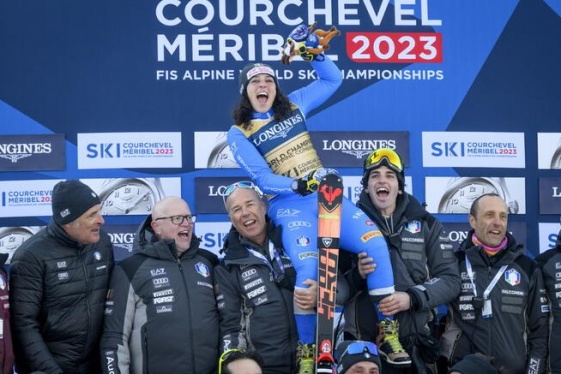 Italy's Federica Brignone won the combined event at the skiing world championships at Meribel Monday. It is Italy's first gold at the championships at the French resort, and Brigone's first world championship gold. The 32-year-old from Milan took the gold ahead of Swiss Wendy Haldener, silver, and Austria's Ricarda Haaser, bronze. US superstar Mika...