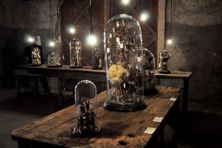 It is a 360-degree view scenic project, a juxtaposition of objects assembled to evoke, exorcise or enhance a theme. Something close to the concept of natural death, implicit in the idea of the past, but that does not lose its beauty, indeed keeps it in a microsystem under the glass.