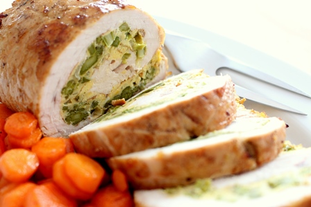 The roll is made with turkey breast, enriched with an appetizing asparagus omelette (for more information about this tasty and healthy spring vegetable spring see tortino di asparagi e salmone affumicato)