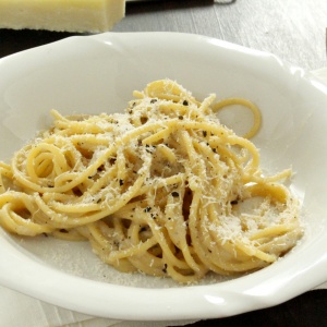 Spaghetti cacio and pepper (pecorino romano cheese and pepper), like carbonara and amatriciana, has now become one of the symbols of Italian cuisine. It is prepared using D.O.P (protected designation of origin) ingredients. Pecorino romano is called cacio to distinguish it from pecorino produced in other parts of Italy. Most pecorino is produced on the island of Sardinia, though its production is also allowed in Lazio and Sicily, as well as in the Tuscan provinces of Grosseto and Siena.