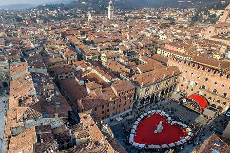 The city's commercial hub is Piazza delle Erbe, where the original Roman Forum was located. This piazza represents the synthesis of several different historic moments; such is affirmed by the 13th-Century buildings – among which Casa dei Mercanti (House of Merchants) stands out - the painted facades of the Mazzanti Houses, and the Madonna Verona Fountain, with its central statue from the Roman Epoch.
