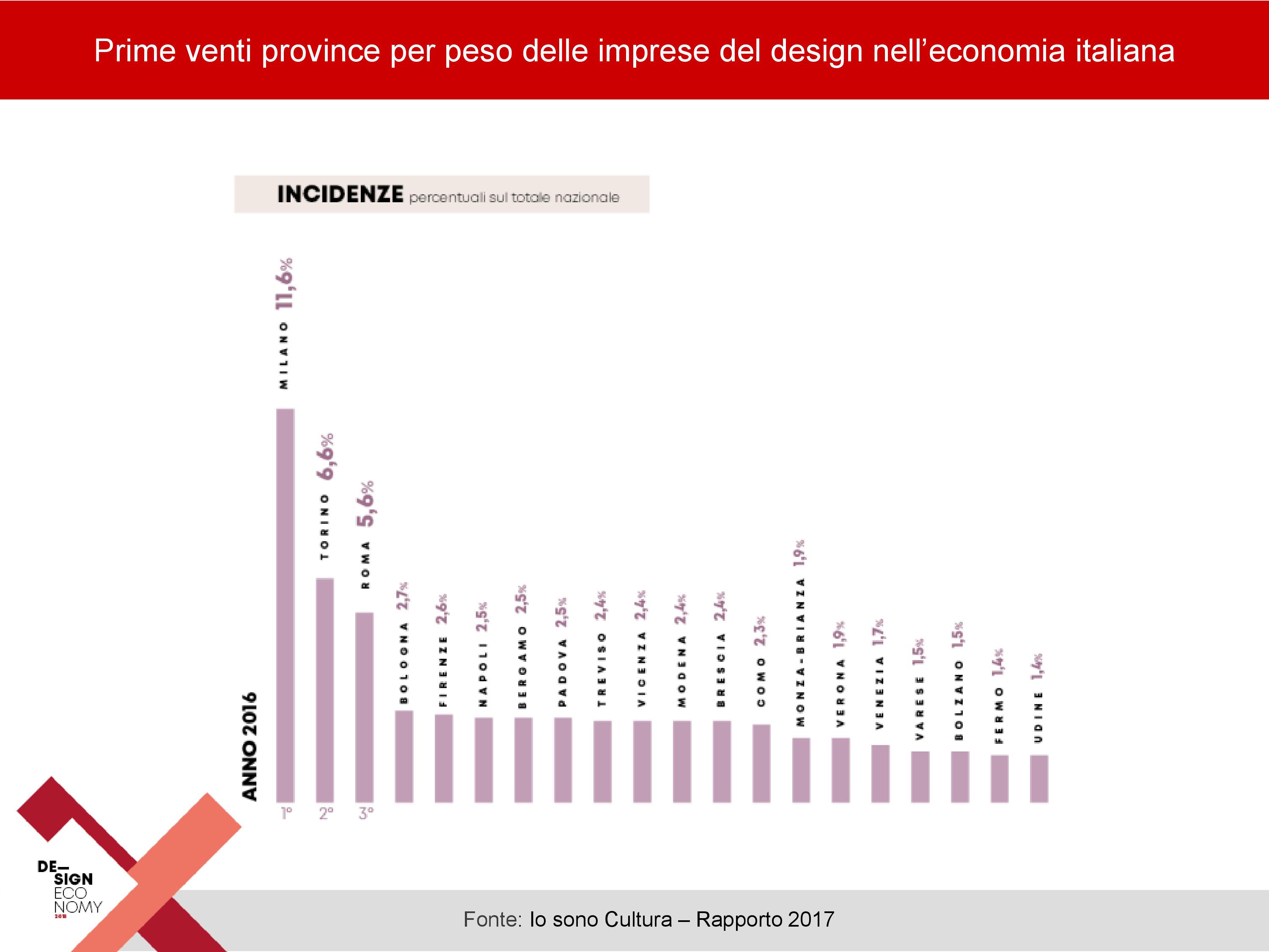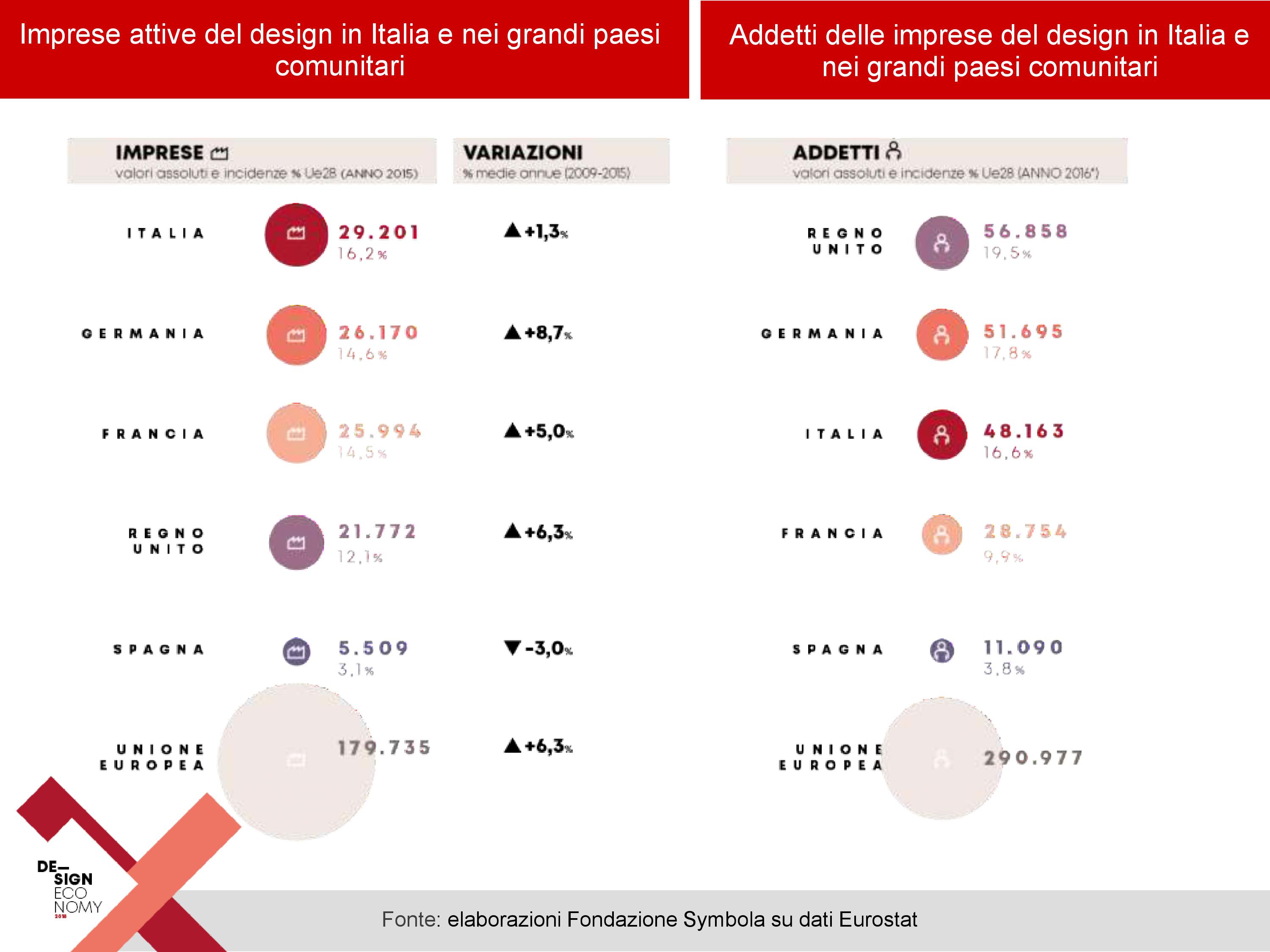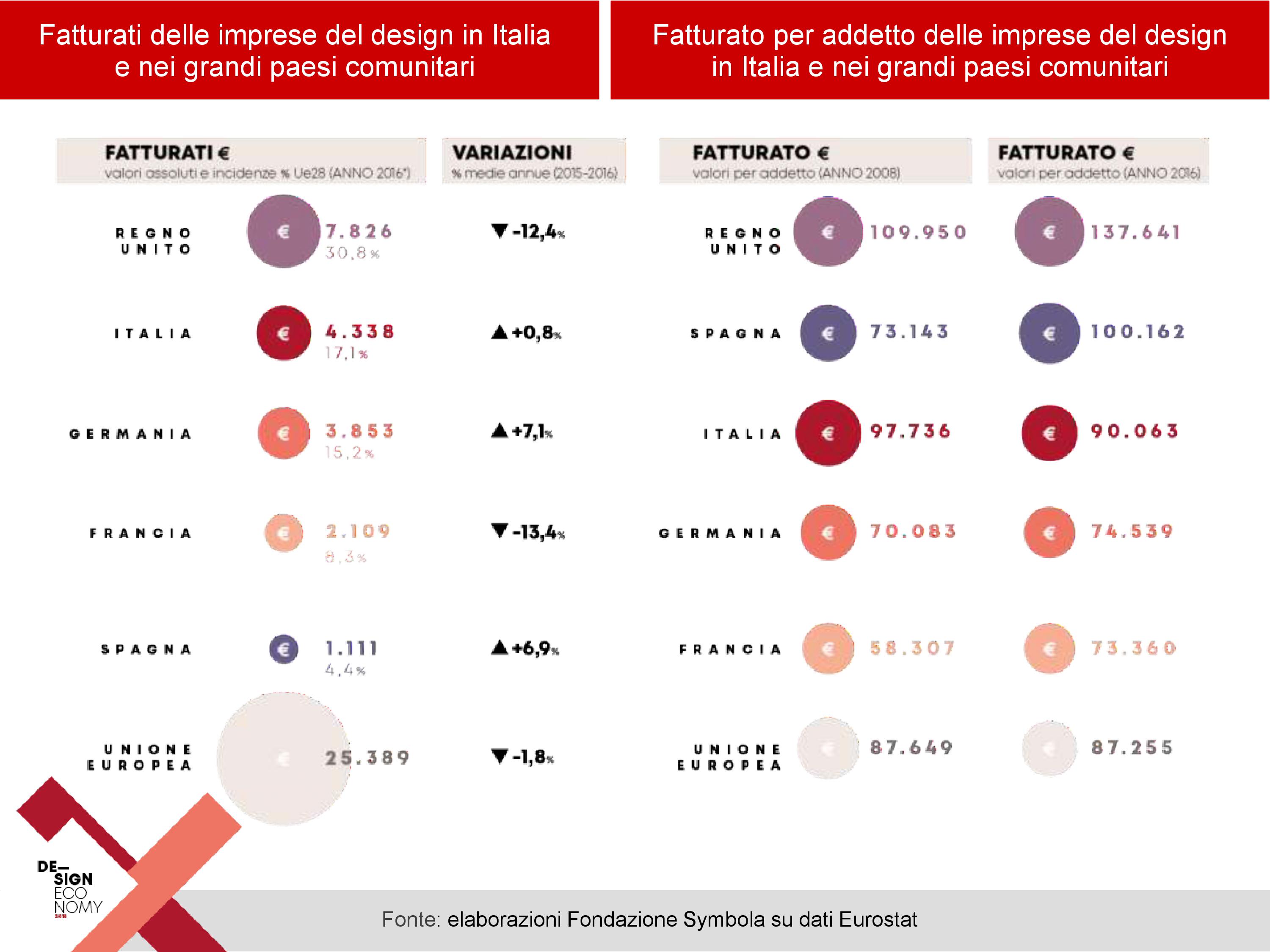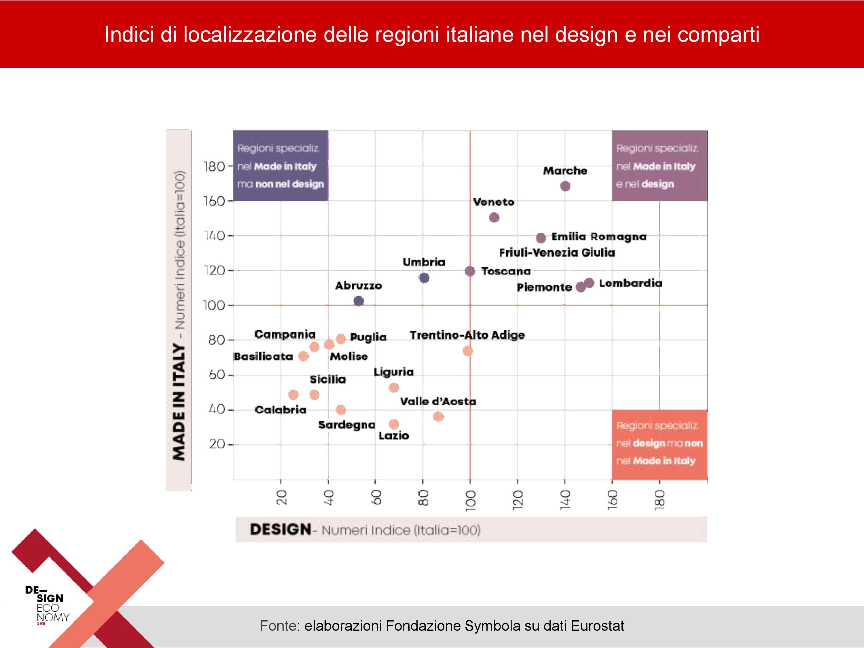 Due to the specific nature of this sector and the important role it plays for the country, since 2017 Fondazione Symbola has been promoting a study on the economy of design, focusing its attention in particular on the contribution that the sector makes to the Italian economy. It is in Italy, in fact, that the craft tradition and innovation, the local dimension and international scope, quality, green economy and beauty can fully meet. Design, understood as "project culture", is one of the best business cards that our country can show to the world. Here, where companies grow thanks to the wisdom of the territories, to the communities, to their knowledge and to their cohesion, design is a real intangible infrastructure of Made in Italy, emblem of an Italy that makes Italy, not denying itself, but looking for the lifeblood to face the challenges of the future.