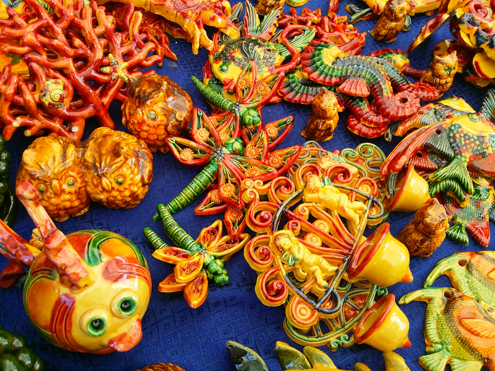 Its predominant colours are green, yellow, blue and Brown. Its shapes are also unique, being closely tied to ancient popular traditions and decorated by specific shapes of flowers and animals.