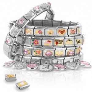 Many, many icons in colored enamel to choose from, to make up the perfect bracelet for mom: hearts, faces, flowers, ribbons, shoes ... and an irresistible "I Love Mum".